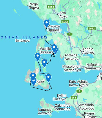 Eine Einweg-Segelroute von Preveza nach Kefalonia bietet die gleichen Highlights wie eine Rundreise ab Preveza, mit dem zusätzlichen Vorteil, dass keine Rückfahrt erforderlich ist und somit mehr Zeit an den einzelnen Orten zur Verfügung steht. Außerdem ermöglicht diese Route die Erkundung des südlichen Teils von Kefalonia, der bei einer Rundreise ab Preveza nicht gesegelt wird.