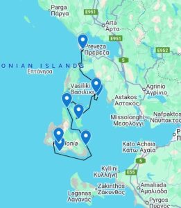 Proposed routes departing from Preveza to visit the Ionian Islands by sea